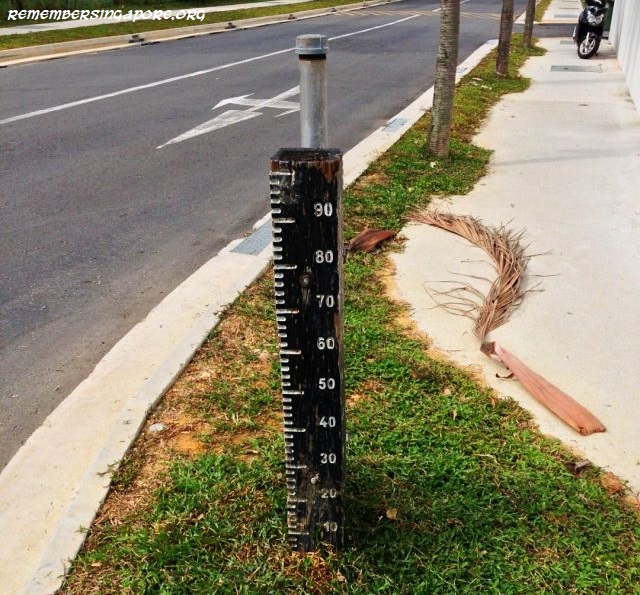 There is also an old flood gauge located along the canal at Kampong Lorong Buangkok.