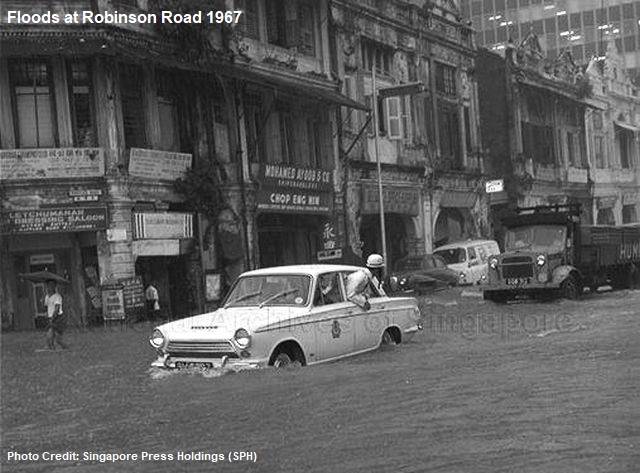 For example, one of the worst floods in Singapore’s history occurred on 11 December 1969, a Hari Raya holiday. Incessant heavy rains led to many parts of Singapore to become severely flooded, with water depths almost at the waist’s level. Electricity and telephone lines were cut, whereas farms were drowned and poultry swept away. There were several deaths, caused by the landslides and fallen trees.