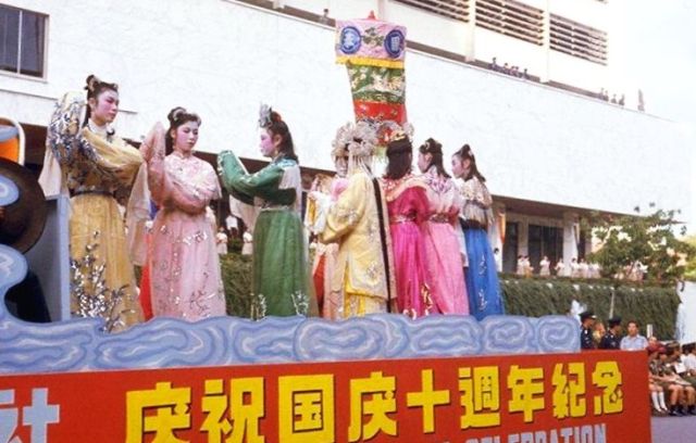 national day floats procession chinese opera troupe 1975