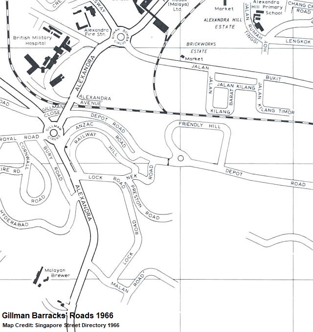 In 1950, a traffic roundabout between Alexandra Road and Ayer Rajah Road was renamed Gillman Circus after the nearby barracks. It was originally called Alexandra Circus but the Municipal Commissioners decided to rename it to ease the confusions of drivers, as there were two more roundabouts along Alexandra Road.