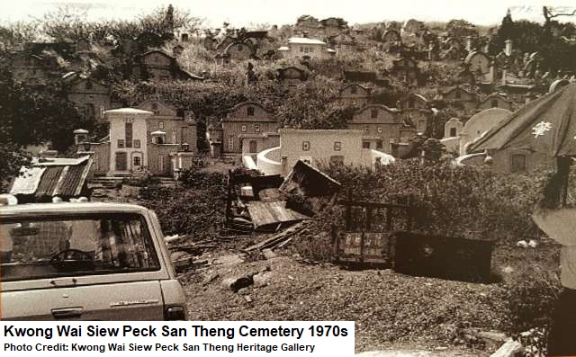 As for Peck San Theng, the burial ground was utilised for more than a century before it stopped receiving fresh burials in 1973, after which the site, stretching from Thomson Road to present-day Bishan, was acquired by the government. Exhumation began after 1982, with the tombs making way for the development of Bishan New Town. Most of the remains were later stored at the Kwong Wai Siew Peck San Theng Columbarium built in the mid-eighties.