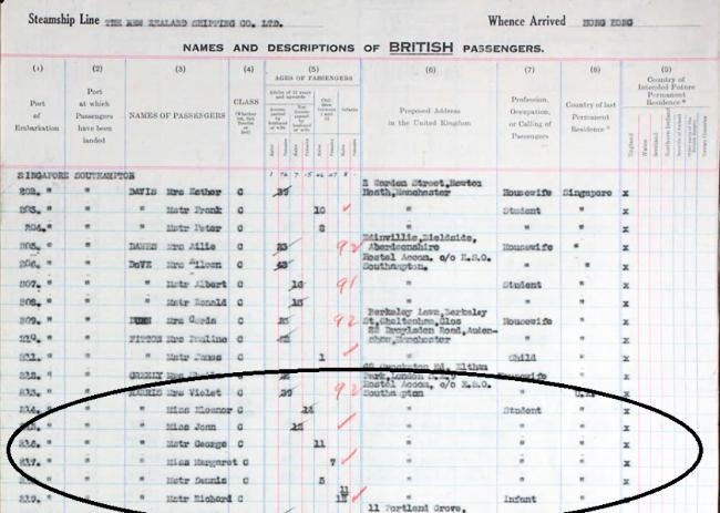 passenger lists england to singapore 1949
