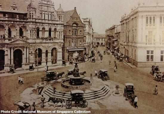 tan kim seng fountain at fullerton square early 1900s